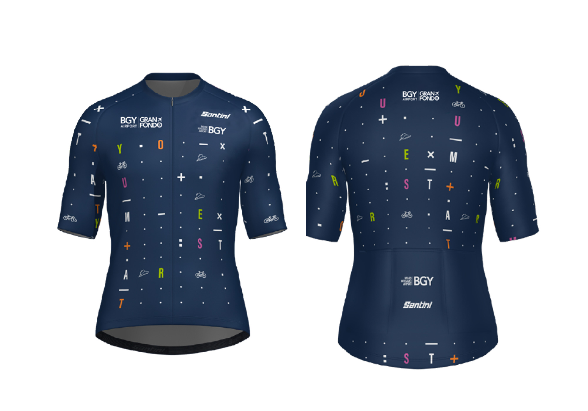 Here is the official “BGY Airport Granfondo” jersey, specifically designed by the Organising Committee. The Granfondo series which you can order when registering for the Granfondo or separately.How To buy it